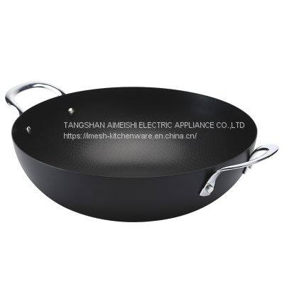 Compared to coated wok pan, the surface of this carbon steel pan is nitrided for non-stick, non-rust, and scratch-resistant, easy-to-clean properties. The nonstick wok help you cook healthier meals with less oil, and keep more nutrients and flavor. The wok pan with lid ensures that there is no chemical coating, so you don't have to worry about toxic substances and coating falling off, making your cooking healthier and more secure.