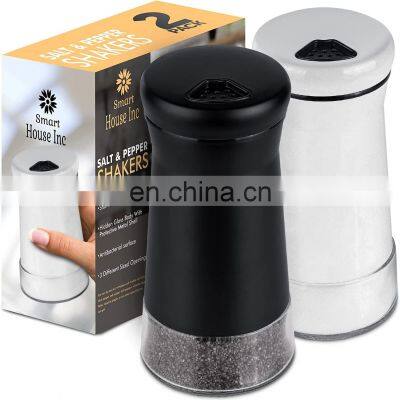 Salt Shaker Or Pepper Shakers - Spice Dispenser with Adjustable Pour Holes - Set Stainless Steel & Glass
