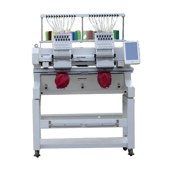 Product Description MODEL: 1202 2 Heads 12 Needles Embroidery Machine 1. Suitable for flat embroidery, cap embroidery and finished garments embroidery, T-shirt embroidery, logo embroidery etc. 2. Embroidery area: 400*500mm 3. Controller: 10" Touch Screen Dahao A15 System,User-Friendly Interface 4. High speed specialized cap embroidery heads,with double cam,double lever, by motorized jump. 5. Automatic thread trimmer 6. The running speed:100- 1200rpm 7. 260 degree Wide cap frame unit 8. Automatic color change and thread break detection 9. Start, Stop and emergency Stop Button 10.Design Tracing Available 11.One-Step Tracing 12. 10'' touch screen display control pannel, showing real time stitching 13. Memory size: 500 Patterns,200 Million stitches 14. Computer Reads Multiple Design Formats.Such As DST.DSB And More. 15. USB port 16.Networkable And Wi-Fi capable 17. Control system can be updated easily 18. Multi-languages:Chinese, English, Spanish, Turkish, Russian.. French, Portuguese, Arabic,Thai, Italian,German, Dutch,Polish 19. Electricity: 110V/60Hz or 220V/50Hz Selfadaptable worldwide available 21.Equip With Laser Positioning(Unit price 15 $ ) 22.Woodencase Packing. 23.Machine Size: 1200x1210x1630mm Packing Size:1480x1030x1050mm 24.Net Weight:310KG Gross Weight:400KG