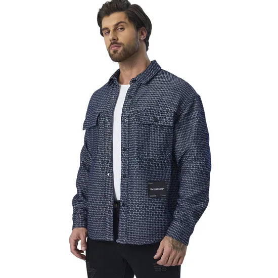 Custom Dark Blue Plaid Oversized Overall Collar Down Long Sleeve Men Jackets