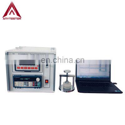 Product DescriptionDRE-III High Temperature Heat Conductivity Coefficient Tester is used to determine the heat conductivity coefficient, temperature conductivity coefficient(Thermal diffusivity) and specific heat capacity of solid or powder materials. With high-precsion, high-resolution and excellent repeatability, it is widely used in research universities, quality inspection departments and other departments. This tester adopts the transient plane heat source method, based on the TPS transient plane heat source technology, and uses a Hot Disk probe.StandardISO 22007-1, 2GB/T32064SpecificationModelDRE-IIIThermal conductivity measuring range0.001~500 w/(m.k)Thermal diffusivity measuring range0.1~100 m2/sHeat storage coefficient range0.1~30 w/(m2.k)Specific heat capacity range0.1~5 kJ/(kg.℃)Thermal resistance range0.5~0.000005 mm2.k/wSample test ambient temperature rangeRT(-40~150℃ can be customized)Temperature accuracy≤0.001℃Measurement relative error≤3%Repeatability error≤ 3%Test time1~120 secondsProbe configurationdiameter Φ15mm(standard configuration)Power supplyAC220V 50Hz, single-phase 500wSpecification of Hot Disk probeHeating materialMetal nickelOperating temperature-50~150℃Maximum power20wMaximum voltage20VMaximum current1AProtective layer materialPolyimide film(Kapton)Nickel wire specificationthickness 0.01mmDetails & FeaturesOur CompanyHistorySince 1982 with more than 20 years’ experienceWarrantyTwo Year Warranty for whole productTrainingVideo and user manual for trainingOnsite serviceInstallation and training service is availableTesting serviceFree sample testing before order is availableLead time15 working days lead time for most productPacking & DeliveryPackagingDimensions420×260×630mmWeight60kgPackaging Details1. The equipment is covered with film is protect it from water vapour during the trip. 2. The box is filled with foam to protect the equipment from impact. 3. Exported wooden box made from plywood, don't need fumigated. PaymentPayment TermT/TEXW30% T/T in advance, paid the balance before shipmentFOBCFR(C&F)30% T/T in advance, paid the balance against copy of B/LCIFL/CL/C amount above 50,000 usd, we can accept L/C at sightWest UnionAmount lower than 5000usdWest UnionDelivery Time7~10days after receiving payment for one containerContacting Us