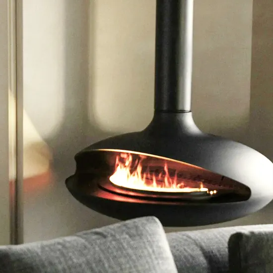 Indoor 3d Suspended Fireplace Durable Carbon Steel Simulation Fire Smokeless Hanging Fireplace Product Description