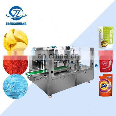 Product Description Model No.ZC-D200Product Namemini doypack baby food spout pouch spoon packing machine granuleFunction Bag-feeding, Filling, Wrapping, Sealing Voltage380V 50/60hzPacking Speed 25-60 bags /minsPacking Bag SizeL: 100-350mmW : 60-200mmApplicable IndustryFood, Drink,Commodity, Medical, Chemical etcSuitable Bag TypeStand-up pouch, Zipper Bag, Film, M pouch etcDimension (L*W*H)5258*3610*3655mmMachine Surface material #304-Stainless steel Gross Weight 1300KGAir Compressed air consemed≤0.6m³ / minAccuracy ±1g (≤100g) / ± 1%( >100g) according to materialWarranty 1 year Customer Evaluation Company Information