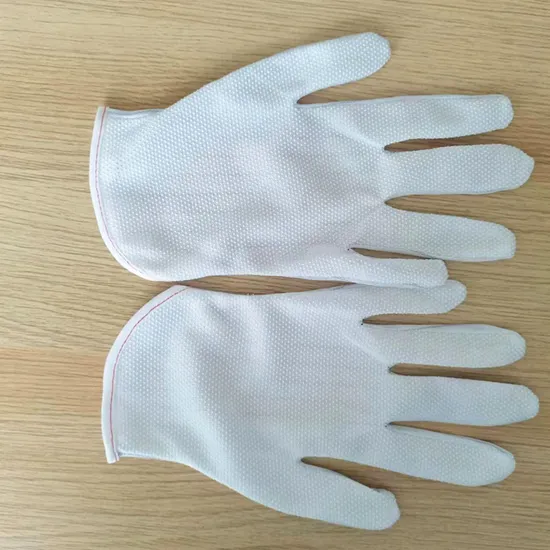 ESD Striped Dotted Gloves is made of 100% cotton Pvc dotted For palm, polyster and conductive carbon yarn for back and packed in class 10 -1000 cleanroom, it ensures workers' safety during electronic manufacturing/assembly and maintain technics and cleanliness. Selecting right glove according to physical & chemical properties of used material and environments ect condition.