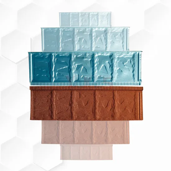 The stone coated metal roof tiles produced by Yahong Group are made of High-quality aluminum plated zinc steel plate, both sides contain zinc layer protection, natural stone covered on the surface, high hardness, not easy to dust, with super water resistance, heat resistance, corrosion resistance, aging resistance, with good impact resistance to low temperature, will not be broken by heavy impact, service life of up to 50 years.There are 10 tile types,Bond tile,New Bond tile,Rainbow tile,Shingle tile,Bevelled tile,Tudor tile,Milano tile,Wood grain tile,Stone grain tile,Roman tile with more than 20 different colors for you to choose from.