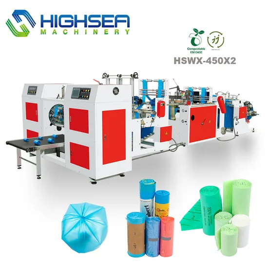 HSWX-450X2 Two Line Fully Automatic Garbage Bag Making Machine With V fold |