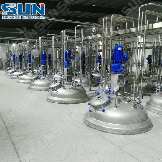 The fermentation process of dairy products and alcohol is aseptic and pollution-free. The fermentation tank adopts aseptic system to avoid and prevent microbial pollution in the air, which greatly extends the shelf life of the product and the purity of the product. The tank body is specially designed and installed with aseptic breathing hole or aseptic positive pressure fermentation system.The tank body is provided with milo plate or labyrinth jacket, which can be fed into heating or cooling medium for cyclic heating or cooling.The capacity of the fermenter varies from 300 to 15000L.According to the scope of use, the fermenter can be divided into laboratory small fermenter, pilot production fermenter, large fermenter, etc.