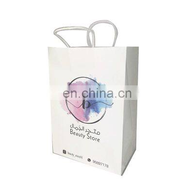 paper bags details:plain cheap wholesale take away recycled FSC white kraft paper stand up flat bottom bag for Shopping Use with handle Item NameKraft paper bags wholesale with rope handleMaterialWhite Kraft PaperSizecustomizeThickness100gsm - moreHandlerope handle,paper twisted handleSurface Finishhot stamping,glossy/matt lamination,UV coated,etc.FeatureDurable,recycledGlued by automatic machineIndustrial Usageshopping bag,gift bag,promotion and so on Samples picture:Packaging & ShippingPackaging Details:15 kg/carton or customized packingDelivery Detail:Shipped in 15 days after paymentPackage picture: Our ServicesWEIYI packaging is a professional manufacturer of flexible plastic packaging bags and packaging roll film for food, seafood, coffee, tea, beverage, snacks, pet food, etc.Main product:Food Packaging bagStand up pouchSpout pouchCoffee bagTea bagAluminum foil bagPackaging roll filmPaper bag Company InformationShantou Weiyi Packaging Co.,Ltd.Business scope:Complex film, vacuum packaging, coffee bags, candy packaging, ice cream packaging, biscuit packaging We are accept custom order, OEM order.Show and Exhibition:Our principle:----credit prior, customers first; providing excellent service,and giving gorgeous colorsWe firmly believe that, with the spirit of consistent pursuit of technological development and good quality, we shall provide you packaging to achieve full customer satisfaction with our utmost. with exquisiteOur Advantage: ♦ Professional manufacture various types of bags ♦ High quality control system ♦ Advanced imported machinery ♦ Superior new raw material ♦ Skillful & responsible staff ♦ Considerate service team ♦ Popular with customers and repeat customers Free sampleFree sample:we provide you free sample which is similar to your material,size and thickness based on freight collect.For new samples:Made by your request and we will charge the sample fee as per our cost.Dispatch time:Stock sample within 3 days,new sample sent after the payment for 15-18daysExpress:Usually we sent samples by DHL,fedex,but we also can sent by any other International express as you request.