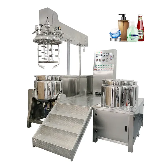 Vacuum Emulsifying Mixer consists of main pot, water/ oil tank, HMI control system, homogenizer, mixing system, heating & cooling system, vacuum system.