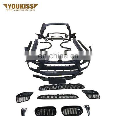 Product DescriptionSpecificationSubjectGenuine UKISS Front Rear Car Bumpers For BMW X5 F15 Upgrade X5M Body Kits Car Grille Fenders Side Skirt Rear Diffuser With TipsProduct nameBody KitsMOQ1 set Stockin stockDelivery timeAfter you finish the payment, we can deliver for you at any timeDetails ImagesPacking & DeliveryAs for the delivery, we provide DHL, FEDEX, TNT, UPS, EMS... also could by Air, by seaIt's up to you, if you are not in a hurry, we suggest you choose sea.Company Profile If you have any questions, please feel free to contact us, we will uphold customer-oriented philosophy to provide you with the most professional, most comprehensive and highest quality service。FAQ1. how can we guarantee quality?Always a pre-production sample before mass production;Always final Inspection before shipment;2. why should you buy from us not from other suppliers? a.We have the first class equipment b. We will make the product to satisfy the customer Hold the flag of continuous improvementc.The strength support for realizing the higher ideal, from this moment we shall be of one mind and seek more higher better quality and more excellent credit and to realize the perfection in the unceasing creation. d.We provide car body kits, front grille, diffuser ,rear view mirror shell, spoiler, exhaust pipe, wheel hub and carbon fiber products and carbon fiber interior trim. e.We provide you 24 hours customer servicef.After sending, we will track the products for you. When you got the goods, test them,install, and give me a feedback.If you have any questions about the products, contact with us, we will offer the solve way for you.3. what services can we provide? Accepted Delivery Terms: FOB, CFR, CIF, EXW, FAS, CIP, FCA, Express Delivery; Accepted Payment Currency: USD, EUR, JPY, CAD, AUD, HKD, GBP, CNY, CHF; Accepted Payment Type: T/T,L/C,Credit Card,Western Union,Cash; Language Spoken:English,Chinese4: What about the delivery time?1-7 days ( most of products are in stock)5: Do you have any certificate?Yes, like Alibaba certification.