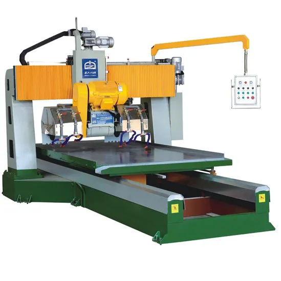 PLC automatic Profiling cutter for granite marble linesThe portal type PLC profiling machine is our latest design for processing the special-shape stone material. This machine extends the maximum width to 1580mm, and it can make 4PCS of line in one time due to 4 blades. Besides, it adopts the double triangle in the rail to improve the stability and working life.