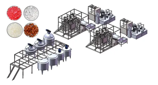 The milk tea beverage crystal ball production line includes gel and sugar water preparation equipment, crystal ball molding equipment, filling and filling equipment, pasteurization and cooling equipment, labeling and boxing equipment, etc. Our company can customize and design a complete solution according to customer requirements --- Including process confirmation, equipment layout, installation and commissioning, as well as product formula and raw material supply, we provide a package of turnkey projects. The 1 ton/hour crystal ball project is guaranteed to be completed within 100 days from project establishment to production, eliminating the communication and coordination of multi-party equipment supply and the trial and error costs caused by process formula testing, greatly shortening the product launch cycle, and is especially suitable for crystal balls, a manufacturer of milk tea beverage raw materials. The project reached production quickly.