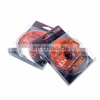LSP black hurricane 30M Super Strong Fluorocarbon Fishing Line Carbon Fiber Leader Line Fly FishingProduct DescriptionProduct nameLSP black hurricane fluorocarbon leader line 30MMaterialFluorocarbon linecolouras photoProduct information5.0#/0.40mm/21.51bs4.0#/0.36mm/18.61bs3.5#/0.34mm/15.61bs3.0#/0.31mm/13.51bs2.5#/0.29mm/12.81bs2.0#/0.26mm/10.51bs1.5#/0.22mm/8.81bsIf you think the product price is too high, please contact us.If you think the shipping cost is too high, please contact us.Customer PhotosAbout UsExhibitionOur AdvantagePackage & ShippingFAQ
