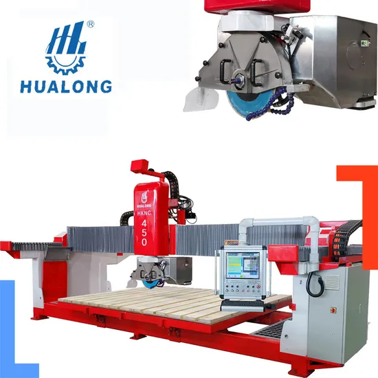 CNC Stone Machine 5 axis interpolated cnc bridge saw HKNC-450 is a multifunctional CNC stone cutting and shaping machine built with the needs of workshops in mind, combining simplicity with maximum versatility for a minimum investment budget. It is popularly used for cutting slabs and blocks of both natural and synthetic stone, and ceramic.