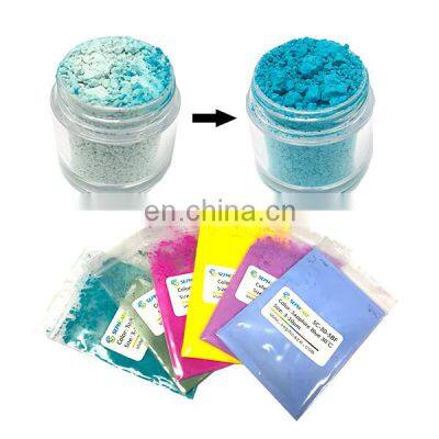 Thermochromic Pigment changes color as the temperature changes. As the temperature goes up, the pigment becomes colorless or colorful, revealing the base coat or graphics underneath or the pigments color. Sephcare's thermochromic Pigment are mainly used in cosmetics, hair dyeing, etc.
