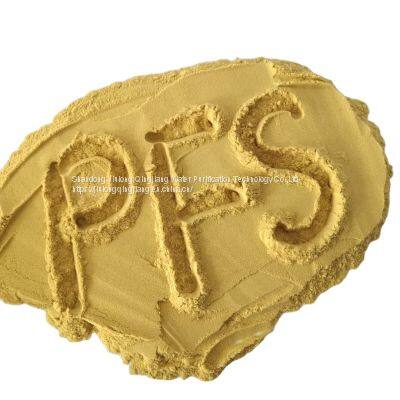 Product alias: polyiron, PFS Product appearance: yellow or reddish brown powder Solid production capacity: 60,000 tons/year Production process: spray drying method Packing specification: woven bag packing, 25KG/bagFerric sulfate is an excellent water purification agent, with good flocculation and adsorption, widely used in source water, drinking water, tap water, industrial water, domestic sewage treatment.Poly ferric sulfate has the following characteristics: low dosage;fast flocculation, large alum, rapid sedimentation;it can decolorize, sterilize, remove radioactive elements, reduce heavy metal ions, and reduce COD and BOD.It is the best cationic inorganic polymer flocculant.