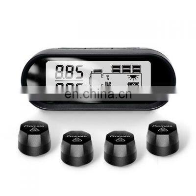 Product DescriptionWireless solar power truck tire pressure monitor Tmps 6,8,10-20 wheels with external tyre pressure sensor Key features: *Solar power display *Show tire pressure and temperature together on the display*Pressure range:0~14 bars/0~203psi*Promata external sensor are universal*Long distance----- if the vehicle length is less than 10 meters, no booster needed. For long vehicle, only 1 booster need to be added. *External tire sensor battery can be used for 2 years, easy DIY installation *Display can be used without light or charging for more than 1 month*E-MARK, CE and FCC certificate Packaging & Shipping Packaging: 1 set 1 color box Shipping: Our Services Guarantee & Customized: 1.Quality Guarantee.All item enjoy 1~5 years warranty from the date of shipped on board; 2.Problem Solving.If there is any problem with our products (no-human damage) , a bran-new one can be replaced in the new order . 3.ODM & OEM service provided.We are the manufacturer of vehicle electronic products for 15 years with strongly developing ability. Company Information About us: Founded in 2001, Promata is an ISO 9001/TS16949 certified factory occupied 20,000 square meters. Our cooperation partner: Schrader, Steelmate, Audiowell, Toyota (Indonesia), Great wall Motor, Changan Automobile, Dongfeng Motor, etc..We work together with our partners to create value for consumers.