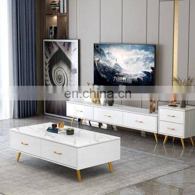 Recommend ProductsProduct ParamentersCommodityLuxury Modern TV table TV stand coffee table stone top with drawer living room tables setTypeFloor StandFuntionsTV Stand + Coffee table with DrawerTV Table Size200*40*25 cmCoffee Table Size120*60*25 cmMaterialMDFCountertopSintered StoneMOQ10 SetSample Time5-12 DaysProducts Description Luxury Modern TV table TV stand coffee table stone top with drawer living room tables setDetails ImagesPackage & ShippingCompany ProfileXiamen Honghaiyuan E-C Co., LtdOur factorys is over 15 years production and specialized in developing and manufacturing household products, such as Bathroom Shelve, Bathroom Vanity, Bookshelf, Kitchen Rack, Photo Frame andShoe Rack Etc..We supply more than 2,000 different kinds of products based on strick quality control, good price and technique improvements.We have professional International business service, OEM business and Door to Door Amazon service.FAQ1.Q: Are you a factory or trading company? A: We are a factory, we can guarantee our price is first-hand, very cheap andcompetitive. 2.Q: Can I get a sample before order? A: Surely you can ,free sample will be offer, but the sample cost and freight. 3.Q: What is the payment terms acceptable ? A: Normally T/T is appreciated. L/C for old customers only. T/T: 30% deposit beforeproduction, balance before shipment.L/C at sight. 4. Q: Do you support OEM service? A: Yes. 5. Q: Do you support Door to Door service? A: Yes. 6. Q: Do you support Amazon service? A: Yes. 7. Q: Do you have your own brand? What name? A: Yes, it’s calle dppengyOur Advantages