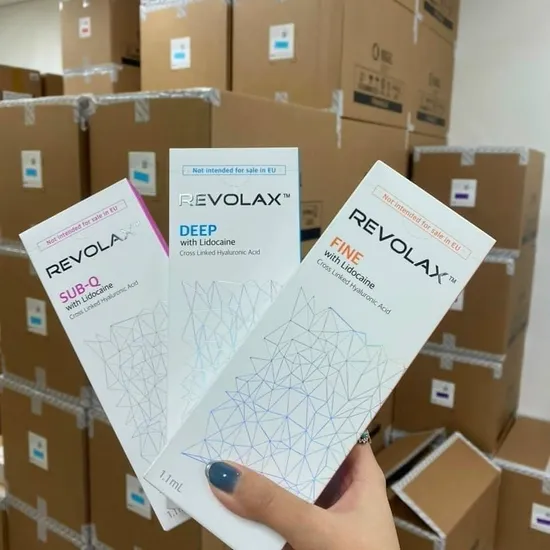 The REVOLAX range of superior-quality dermal fillers includes:REVOLAX Fine - REVOLAX Fine with Lidoca is a lightweight and high-viscoelasticity dermal filler. It is developed for improving the appearance of superficial lines with a flawless result.REVOLAX Deep - REVOLAX Deep with Lidoc is a thick and longer-lasting gel that's developed for the treatment of deep wrinkles and augmentation of the cheeks, chin, and lips. This mono-phasic hyaluronic acid (HA) filler is to be injected into the deeper dermis or subcutaneous tissue.REVOLAX Sub-Q - REVOLAX Sub-Q with Lidoc has the thickest properties within the product line. With its advanced ability to mould, maintain structure, and longevity, REVOLAX Sub-Q is recommended for the treatment of deep-sized to extremely severe wrinkles, non-surgical rhinoplasty treatments, chin, cheek and jaw.