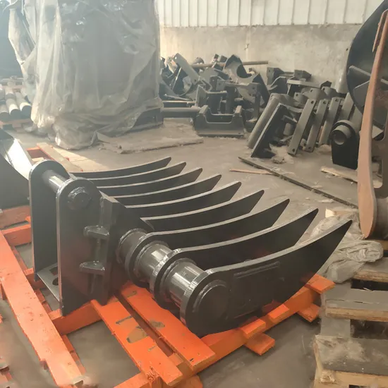 this excavator attachment is perfect for picking up, sifting and transporting large rocks and vegetation.
