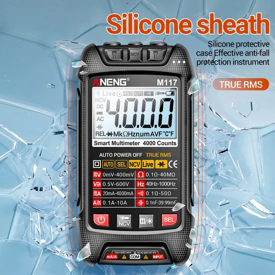 ANENG M117 Multimeter Auto-Ranging Digital Tester Intelligent Multi Tester - Black This multimeter is a golden partner to help to troubleshoot a variety of automotive and household electrical problems safely and accurately It can measure up to 600V AC/DC voltage, 10A AC/DC current and 40MΩ resistance Large backlight LCD display screen, easy-to-read digits offer a 4000-count resolution Specification: