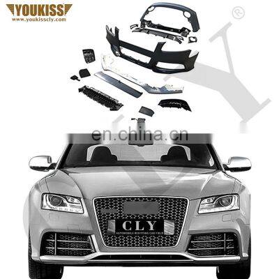 Product DescriptionSpecificationSubjectGenuine Old Model Body Kits For Audi A5 Upgrade S5 RS5 Car Bumpers With Car Grille Flog Lamp Grille Rear Diffuser With TipProduct nameBody KitsMOQ1 set Stockin stockDelivery timeAfter you finish the payment, we can deliver for you at any timeDetails ImagesPacking & DeliveryAs for the delivery, we provide DHL, FEDEX, TNT, UPS, EMS... also could by Air, by seaIt's up to you, if you are not in a hurry, we suggest you choose sea.Company Profile If you have any questions, please feel free to contact us, we will uphold customer-oriented philosophy to provide you with the most professional, most comprehensive and highest quality service。FAQ1. how can we guarantee quality?Always a pre-production sample before mass production;Always final Inspection before shipment;2. why should you buy from us not from other suppliers? a.We have the first class equipment b. We will make the product to satisfy the customer Hold the flag of continuous improvementc.The strength support for realizing the higher ideal, from this moment we shall be of one mind and seek more higher better quality and more excellent credit and to realize the perfection in the unceasing creation. d.We provide car body kits, front grille, diffuser ,rear view mirror shell, spoiler, exhaust pipe, wheel hub and carbon fiber products and carbon fiber interior trim. e.We provide you 24 hours customer servicef.After sending, we will track the products for you. When you got the goods, test them,install, and give me a feedback.If you have any questions about the products, contact with us, we will offer the solve way for you.3. what services can we provide? Accepted Delivery Terms: FOB, CFR, CIF, EXW, FAS, CIP, FCA, Express Delivery; Accepted Payment Currency: USD, EUR, JPY, CAD, AUD, HKD, GBP, CNY, CHF; Accepted Payment Type: T/T,L/C,Credit Card,Western Union,Cash; Language Spoken:English,Chinese4: What about the delivery time?1-7 days ( most of products are in stock)5: Do you have any certificate?Yes, like Alibaba certification.
