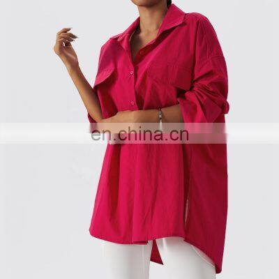 | Product Name: | Women Long Line Cotton Loose Shirts Tops Custom Full Button Casual Pockets Blouse |