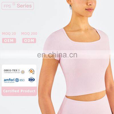 MASS_APP4_2177_BEGINMASS_APP4_2177_ENDProduct DescriptionProduct NameRibbed Fabric Square Neckline Short Sleeve Gym Tops Slim Fit Plus Size Women's T-ShirtsProduct NumberTX1441Typewomen t shirtFabric Material1.87%Nylon+13%Spandex:260-290/300-310gsm2.80%Nylon+20%Spandex:220-240/360gsm3.90%Polyster+10%Spandex4.87%Polyster+13%Spandex5.75%Nylon+25%Spandex6.CustomizedFabric FeaturesBreathable, Durable, Moisture Wicking, Quick-dry, Great Stretch, Comfortable, FlexibleColorAs PictureSizeS-XL(or custommized)MOQ200PCSLogoHeat Transfer,Screen Printing, embroidery, Label Sewing, Weaved Waisted, Sillicon PrintingPaymentWest Union,T/T, Paypel, Bank Transfer, Money GramPacking 1 P/C bag or as your requirementsShipping EMS/DHL/Fedsx/TNT/Sea shipment Port Ningbo/Shanghai/ShenzhenDelivery days 7-15daysPackaging & ShippingAll products, we will pack them carefully, every item will be pakaged with PP bag, and using the bubble bag, carton or any other protected stuff if necessarily.By sea or by air+truck transportation(DDP), or by Air express, such as DHL, FEDEX, UPS, EMS etc.(door to door )Our Services1.24 hours online customer service.2. Low MOQ for initial order.3.And you can also choose to ship the goods by air,such as DHL, UPS, Fedex, TNT and so on.4.We provide OEM/ODM service.You can customize the product color and package with your own brand.FAQ1)who are we ?We are a manufacturer with 11 years of experience. Since 2009, we have researched fitness clothing and independently developed fabric design styles. Now, we have become a stable manufacturer of middle and high-end yoga in China.2)How can we guarantee quality ?Always a pre-production sample before mass product Always final inspection before shipment3)What can you buy from us ?Fitness clothes (yoga clothes)4)Why should you buy from us ?1.Experienced in logistic ,market and internation trading service 2.Experienced design team accept ODM/OEM5)What serices can we provide ?1.Accepted delivery term:FOB,CFR,CFR,CIF,EXW,DDP,DDU,EXPRESS2.Accepted payment currency :USD EUR CNY3.Accepted payment type :T/T L/C ,Paypal ,western union ,escrow4.Language spoken :English Chinese