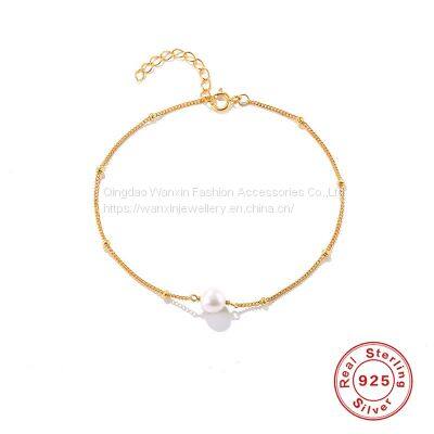 S925 Sterling Silver Light Luxury Gold-plated Pearl Bracelet