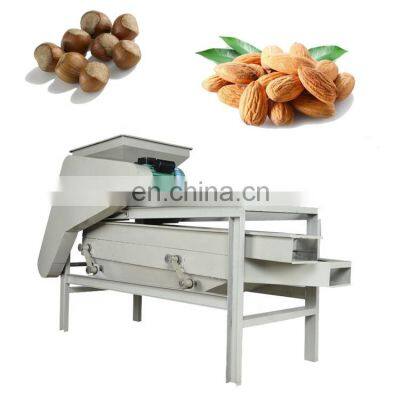 Automation nut cereals almond shell seporating machine Raw material: almond, badam , hazelnut, nut, grainStructure of almond shell seporating machineThis machine has the feeding hopper, the rod roller, the slat groove, the fan, the gravity sorting screen, the air feeding machine, etc. The structure is simple and compact, the operation is simple, the performance is stable, safe and reliable, and the durability is good. working principle of almond shell seporating machineAlmond walnut, etc., manually fed into the hopper, first rolled into the drum The tea seed shell and the kernel are peeled off, and after screening, the sieve is sieved on the surface, and the rice seed is poured into the sack through the rice noodles, and the tea seed small fruit is not peeled off from the sieve surface, and flows into the air delivery machine through the discharge port, and then The air delivery machine is sent as a roller, and is subjected to secondary shelling, and then sorted by gravity screening to achieve full stripping. Parameters of almond shell seporating machine Model TZ-300Capacity 400kg/hPower2.2kwVoltage 380vSize of machine2*1*1.45mWeight260kg FAQ1. How long will the transportation take?Depending on your quantity, for goods, we have in stock. Delivery takes a few days to comply with your request to replace the plug or other configurations. For regular order, by ocean shipping takes 20-40 days. For small machines, express delivery for 3-8 days. 2. Are you a manufacturer or distributor?We are an experienced manufacturer and exporter. We own a technical team comprised of over-average experts in R&D and innovation. Notably, we own high-level factories and cooperating factories who can offer efficient manufacturing and high-end products when dealing with a bulk order.3. How do I know about the details and quality of your machine?First, we have product brochures covering all details including parameter, material, output, etc. of most of our production lines; secondly, we can provide you with videos filmed on-site with details about the working process and how mechanical parts work during operation; at last, you are warmly welcomed for on-site inspection at our factories. 4. What certification do you have?We have CE, BV, SGS, ISO, CCC, etc. Please do trust us, we are determined to provide you the best quality equipment.5. Why choose us?We have dedicated to the machinery manufactory industry for more than 10 years with a rare negative response. We are time has proven-- client’s response and comments are the most validated evidence.our customer business card Certifications