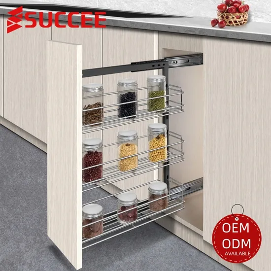 Key Features: This multipurpose Side basket makes full use of the small space of the base cabinet, keep the cabinet more organized. Storage: drinks, milk, cups, bowls, etc... Baskets: 2 kinds of basket options to meet different market demands, iron chromed or stainless steel chromed.