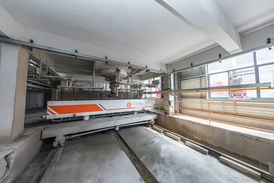 The assembled cakes are sent into the tank for constant pressure maintenance by the traction mechanism in front of theautoclaves and the ferry cart in front of it.