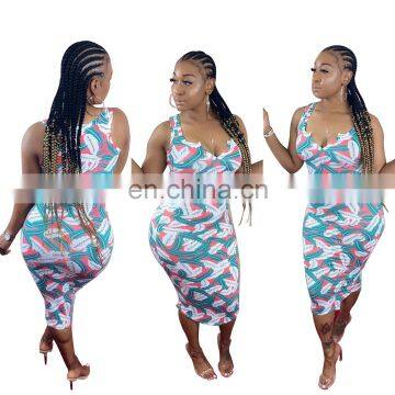 LAITE D2115 Amazon Hot Sales Ladies Fashion Printed Casual Dresses Women Summer Dresses