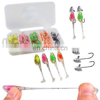JOHNCOO 4.5cm 0.9g High Quality TPE Material T Tail Paddle Crappie Shad Bait Set Small Fishing Lure