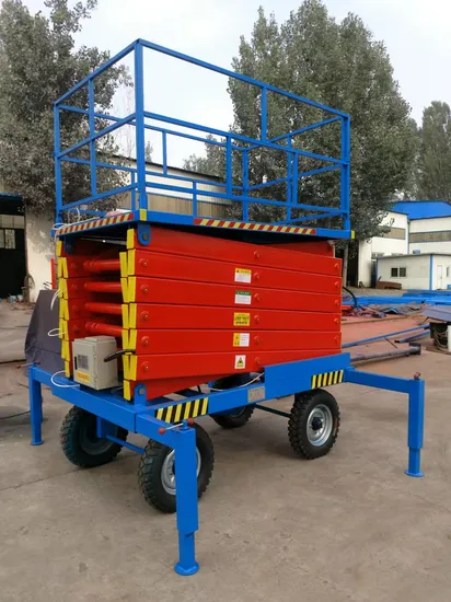 Portable scissor lift platform is widely used for aerial working,it has the advantage of self-propelled,small volume,high workingefficiency etc. It has walking and lifting function,with the control handle to control the direction of running,speed can beadjusted,equipped with a brake device,battery driven DC motor running and movements,you can also choose AC motor or diesel enginerunning and movements,it also can use wireless electronic remote control movements,without the need for manual traction and doesnot need an external power supply,flexible and convenient in movement,it is ideal product for aerial working.