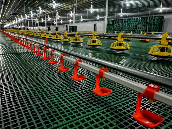 · Waterline Front System : Used to control the drinking system, including filter, water meter Dosatron medicator etc · Pressure Regulator : 10-13KPA · Main Water Inlet System : ∅32mm PVC Connecting of Regulator and Re-flush Water Tube : include valve soft pipe · Nipple Drinking System : 16nipples/4m/unit with drip cup · Winch : 1500LB · Hanging System : 3m distance · Water-level Display Pipe · Anti-roost System
