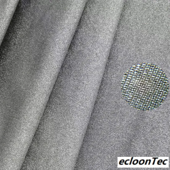Radiation-proof electromagnetic shielding silver fiber elastic fabric is a conductive elastic fabric produced by silver fiber and spandex , the electromagnetic shielding value can reach 50DB,and it has excellent elasticity in all four directions, soft and smooth, which can be used to produce radiation-proof electromagnetic shielding clothing, conductive materials in smart wearable products, antibacterial clothing, etc. Silver is bonded to the base material polyamide fiber through intermolecular forces, with high fastness, washing resistance, and silver will not fall off.