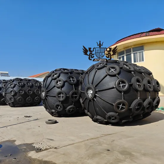 Product Description Floating pneumatic rubber fenders are known as Yokohama fender or Yokohama-type pneumatic fenders. Floating pneumatic rubber fenders are made of the synthetic-cord-reinforced rubber sheet with compressed air inside. The insider air can enable it to float on the water and work as a shock absorbed between two ships (ship-to-ship), or between ships and berthing structures when they come alongside each other on the water. Our Jerryborg Marine Yokohama type floating pneumatic rubber fenders are manufactured and tested fully compliant with ISO 17357. Floating pneumatic rubber fenders can be easily handled and installed with guy-rope or guy-chain because of their lightweight. It can resist the shearing force and maintain energy absorption level under inclined compression up to 15 degrees. Meanwhile, provide low and comparatively even hull pressure. Consisted of several synthetic-cord layers and tough abrasion-resistant rubber, they have consistent performance even under rough conditions and cyclic load. The maintenance cost and damage risk are minimized too.The best material also ensures self-buoyancy and extremely long service life. Pneumatic fenders are available from 500 mm to 4,500 mm in diameters, and from 500 mm to 9,000 mm in length. All sizes of pneumatic rubber fenders are available as sling-type or with a heavy-duty chain & tire net. We also supply vertical hydro pneumatic fenders for submarines.