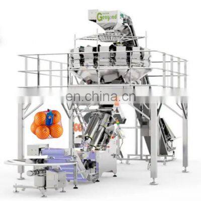 Products DescriptionProduct OverviewIndustry Auto Mesh Bag Netting Packing MachineThis machine is a fully automatic mesh bag packaging machine that does not need to seal airtight vegetables and fruits and hardware accessories. such as apple, onion, orange, mandarins, lemon, potato, tomato, peach, etc. Mesh bag with bottle type label, suitable for fruit and vegetable low cost package.Introduction:The unit speed of the bagged packaging equipment can reach 40 bags/minute at the fastest (the packaging speed of different products is different, and the actual number of packages shall prevail). Working Process:The work flow is as follows: After the manual sorting of products, the conveyor belt where the materials are placed in the middle is sent to the net bag packing machine by the lift conveyor belt, and the set label is automatically printed when the automatic packaging is completed. The manual framing is performed to complete the standardized packaging of products. Features:1. The machine is made of hard carbon steel plate and stainless steel, which is safe and sanitary, greatly improving the corrosion resistance of the equipment.2. Automatically replace the network management after using the packing net.3. AirTEC pneumatic components with stable performance and long service life are adopted.4. The combination of two positioning gears and proximity switches makes the push net precise. Advantage:1. LS frequency converter with reliable performance and convenient operation, Schneider PLC and touch screen electrical control are adopted.2. The package size is standard.3. It is convenient and quick to replace the binding band.4. The operation interface is popular, simple and convenient.PRODUCT SPECIFICATIONSPackaging speed40bag/minPackaging materialssausage, edamame, garlic, onion, potato, sweet potato, and other root type anti drop productsWeight500KGPower supply requirements380VWeight of package150g - 1500gApplicable packaging materialnet bagPRODUCT CONFIGURATIONCompany ProfileContact usRecommend Products