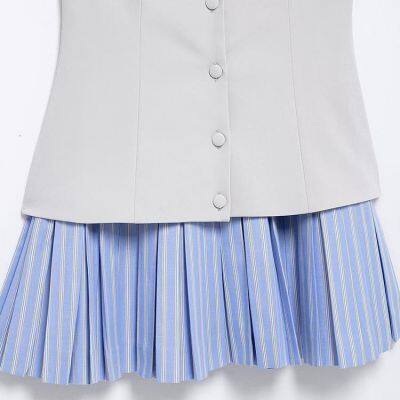 Women's new style spicy girl style poplin waist cinching patchwork suspender pleated short dress
