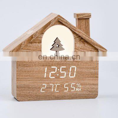 House Styling LED Light Christmas Home Decorate Temperature Humidity Display LED Alarm Clock WIth Voice Control