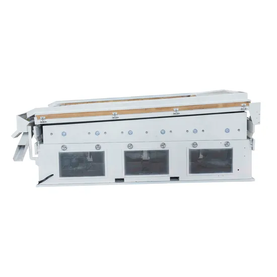 The grain gravity separator works on a fluidized bed principle. Materials is fed on oscillating sieve deck. By the pressure of air & deck oscillation, material is fluidized and stratified. Heavy fraction sink into the deck while light fraction is suspended in fluidized state. Deck oscillation causing heavy and light fraction travel in separated path and collected separately.