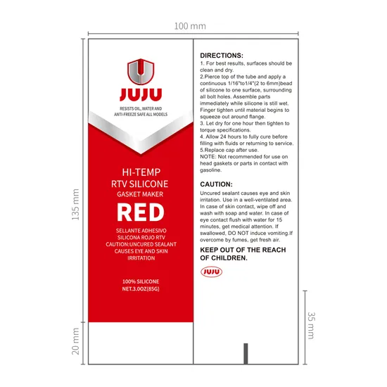 Benefits: Easy to use: squeeze easily at any time. Ambient curable, apply to the engine and transmission of high performance sealing. Excellent resistance to medium resistance aging, ultraviolet light can withstand oil, gas, water. Excellent corrosion resistance: Used in all kinds of steel and difference temperature condition.