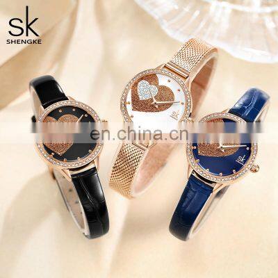 SHENGKEG New Design Watch Wrist K0168L Lady Watch Love Heart Dial Romantic Handwacth Leather Stainless Steel Mesh Band WatchModel NumberK0168LBrandSHENGKE(SK)StlyeLady Luxury WatchMovement Citizen(2025)Case MaterialAlloyDiameter/Thickness28.0mm/7.5mmBand MaterialSS Mesh / PU LeatherBand Width10mmWaterproof3ATMBattery Life18 Months1. What's your MOQ? Can I mix styles and colors?A: Take our brand logo watches for wholesale is no MOQ limited , but if customized your logo (OEM ), the MOQ is :Alloy case watch 300pcs/style,can mix 2~3 colors ,stainless steel case watch 500pcs/per style .can mix 3~5 colors 2. Can we print our own logo?A: Yes,we can print your logo or design on the band, dial, buckle, back, case and other place, usually the color of the logo is one color.3.What about the warranty?A: 12 months movement warranty, and we are very confident with our products, and we will pack it very well, so usually you will receive your goods in good condition. But to avoid any subsequent trouble regarding quality issue, we suggest you check the watches once you receive them, and let us know if there is any damaged ones, so that we can deal with it accordingly.4.Do you offer Drop shipping (Blind shipping )?Yes , we offer Drop shipping/Blind shipping,we haven enough experience in drop shipping ,every day we have many watches to send out many countries for drop shipping.5. Do you do custom watch boxes?Yes, we do custom watch boxes. We can follow your requirement to make the boxes ,or you can select our boxes with your logo.6. What movement do you usually use in your watches?We usually use Japanese movement ,Swiss movement, and Chinese movement, for example Seiko,Citizen,Miyota,Ronda ,Kingstar we use most.7.What is your packaging?1.Not over 5 pcs order ,each watch will be put into a bubble bag then packaging well into a safe white bag(as below picture)2.Over 20 pcs order ,each watch will be put into a opp bag, then put into a bubble bag, after that all total put into a white box.(as below picture)For OEM/ ODM Products packaging:Normal packaging 1.Each piece will be put into a poly bag;2.20 pieces into a white box;3.10 white boxes into a 39*30*33cm carton; Special packaging: As per your request. Note: Only Normal packaging service is free.