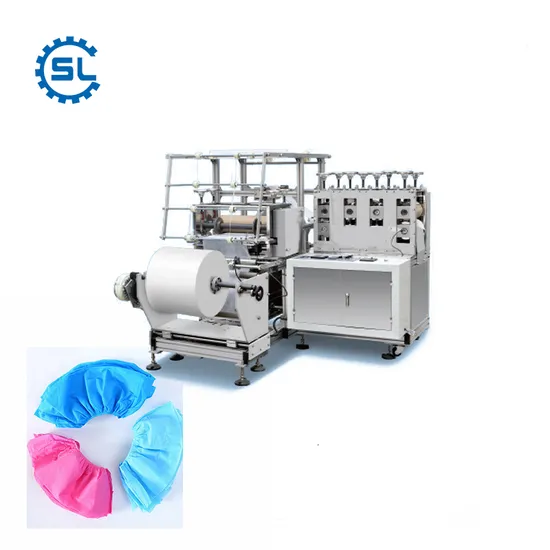Disposable automatic shoe cover making machine, which can produce non-woven material shoe covers with good quality, low price and high output. It can completely replace manual shoe covers, save labor and reduce costs, and can be customized according to customer requirements.