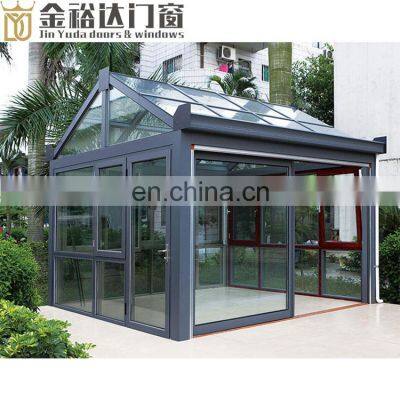 Products DescriptionItemHerringbone roof sun roomProfiles1.6063-T5 High Quality thermal break aluminium profiles.2.6063-T5 high quality non-thermal break aluminium profilesGlass1.Double toughened glazing: 5mm+9A+5mm,5mm+12A+5mm;5mm+15A+5mm;5mm+20A+5mm2.Triple toughened glazing: 5+7A/9A+5+7A/9A+5)3.Laminated glazing: 5mm+0.76+5mm;5+1.52+5Hardware1. German brand: Roto, Hopo2.Italy: RGT3.Chinese Brand: KinlongMeshStainless steel security meshFinish1.Powder Coating2. Anodized3.Electrophoresis4.Wood grain5. Fluorine carbon coatingSounds insulation:Rw≥30 dBWindpressure resistance:4500 paAir permeation resistance:70/150Water resistance:450Pa/600PaPackagingPlywood Pallet+ Air bubble film+ plastic film As Per your specific requestsWarranty10 YearsMore ProductWhy Choose UsAbout UsOur FactoryProduct DescriptionOur CustomersPacking & ShippingFAQ1.Q: what’s your MOQ ?A: 1 metric ton for each model 2.Q: What’s your payment term?A: 50%deposit,50% before cargo loading 3.Q: Can you provide samples?A: Yes, surface color sample available, 5 days received. OEM new sample need new mold creating 15 days roughly. 4.Q: Can you do OEM, how about the mould cost?A: OEM is welcomed. The mould cost is depended on differet design. 5.Q: Do the price of all the colors are the same with the same surface treatment? A: No, different surface treatment prices is different. 6.Q: What are the main market of your products?A: Our main market are America, Australia, Africa and Europe 7. Q:How can you ensure high quality?A:1)We have our own material production workshop. 10 years die factory partnership. 2)21 production lines. 800 workers. Workers training well before on job. 3)100% QC online and final inspection. Our QC won’t let any defective products get out of our factory. 4)We have so many certificates, ISO9001:2008, ISO14001:2004, ISO10012,etc