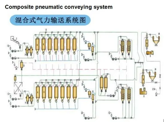 Dense-phase high-pressure pneumatic conveying: the system has a low flow rate, low gas consumption, suitable for long-distance, large-capacity, multi-dispersed conveying, for the permeability of the material, it is easy to realize the fluidization of conveying, with low noise, less broken.