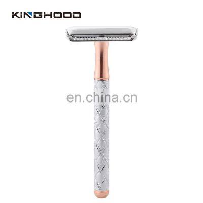 Smple charge is 30usd include shipping cost include laser logo on the razor.KINGHOOD FactoryVRProduct DescriptionDescription:Professional Reusable Double Edge Razors Adjustable Safety RazorSize11.3cmx4.6cmMaterial:Razor head: Zinc alloyRazor handle: brass handleColor available:Rose gold, Gold, Black, Silver, customizedPacking available:white box, gift boxPayment30% deposit,70% againest faxed document. T/T,Paypal....ShipmentDHL,FedEx,UPS....By air and sea are availableWhy Choose UsFAQQ1:Are you a factory or trading company? A:Absolutely we are a factory with more than 12 years production experience. Q2:Can you customized my own brand or designs? A:We're the direct manufacture and it's available to customize your preferable design and brand & Logo.Just please provide your full requirement and documents to our sales, then they will give you the professional suggestions. Q3: Can you do OME?A:Yes,we can do OME products. It's no problem.Q4:May I ask for a free sample? A:We are glad to send you a free sample if we have the stock, but it is your turns to pay the courier fee. Q5:What is the minimum order quantity of your product? A:The MOQ of mirror is 3000pcs,For the razor 10pcs.