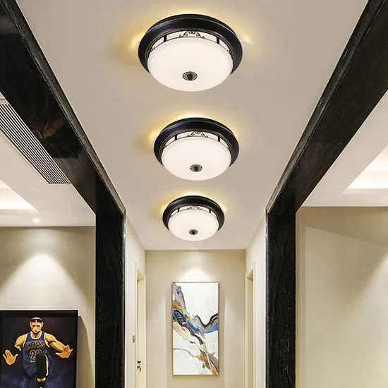 Modern Luxury Paint Black Round Iron 2.4G Home Glass Ceiling Lamp