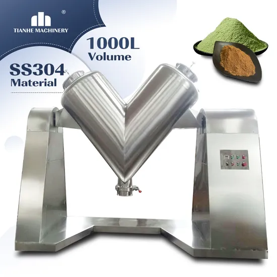 Product Description VH1000 Dry Powder Mixer: designed for seamless, user-friendly functionality. 1.The external surface and material contact parts are crafted with precision using 304 stainless steel, ensuring durability and longevity in every use. 2. Manual feeding and a state-of-the-art closed disc valve discharging structure provides a dust-free operation, enhancing workplace safety and cleanliness. 3. Ingenious V shape design, featuring double arms for uniform mixing and exceptional high efficiency, boosting your productivity. 4. Customizable controls support PLC to meet your specific operational needs. 5. Easily programmable mixing time setting device, allowing precise adjustments for optimal results.